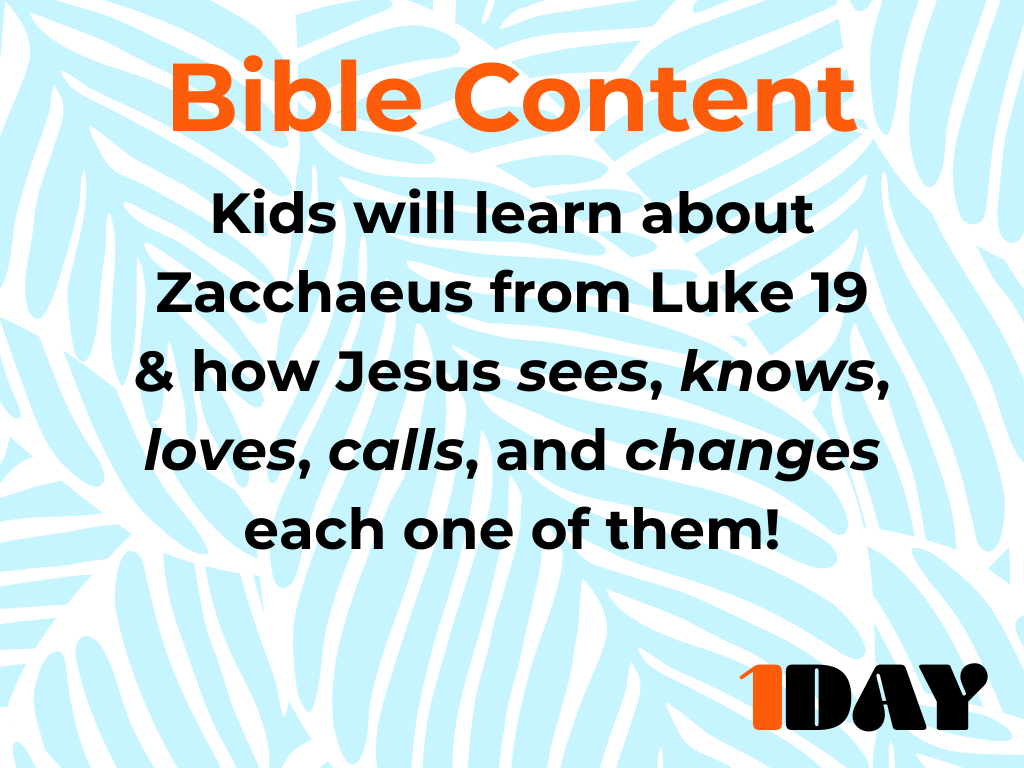 Looking for a powerful, one-day VBS experience? 1Day is a fully-planned, gospel-centered event guide that takes kids through the story of Zacchaeus, helping them understand that Jesus sees, knows, loves, calls, and changes them. This resource includes everything you need to host a memorable one-day VBS—perfect for churches looking for a flexible, engaging alternative to traditional week-long programs.