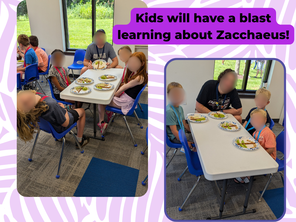 Each station (Snack, Craft, Gospel, Small Group, and Recreation) reinforces a key biblical truth from the Zacchaeus story. The guide features detailed volunteer roles, supply lists, printable resources, customizable schedules, and even DIY button pins that help kids take home tangible reminders of the day’s lessons.