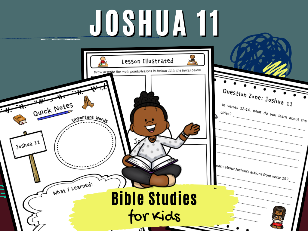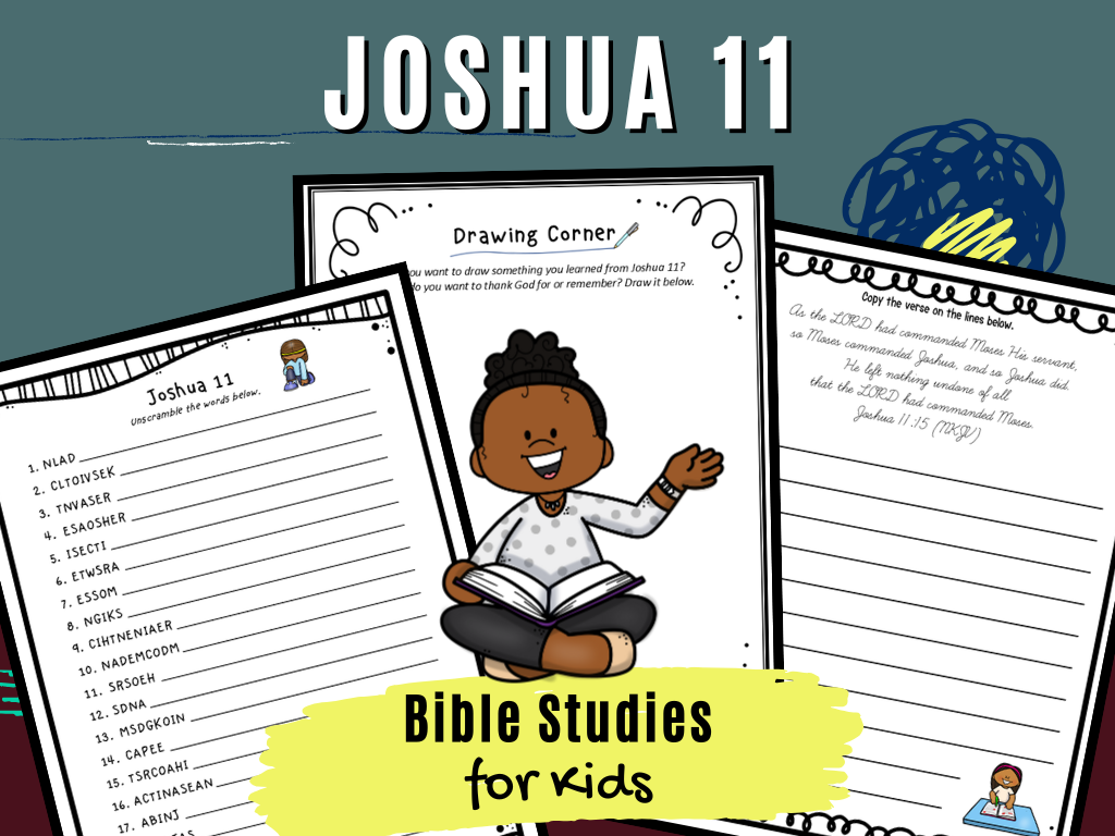 These fun activity pages will help children learn Joshua 11, which focuses on when Joshua and the Israelites have victory over the northern kingdoms in the land of Canaan. They can be used as time-filler activities, Sunday School lessons, or for a family worship service based on Joshua 11. They can also be used for personal Bible study at home.