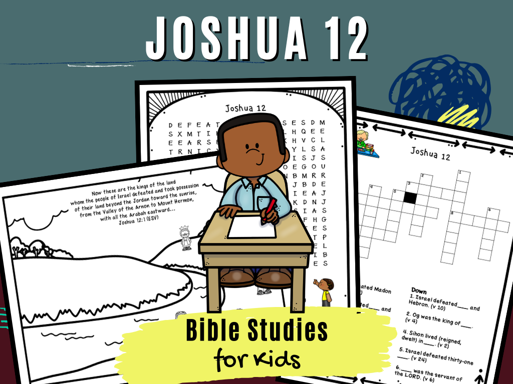 These fun activity pages will help children learn Joshua 12, which lists the kings that the Israelites defeated. They can be used as time-filler activities, Sunday School lessons, or for a family worship service based on Joshua 12. They can also be used for personal Bible study at home.