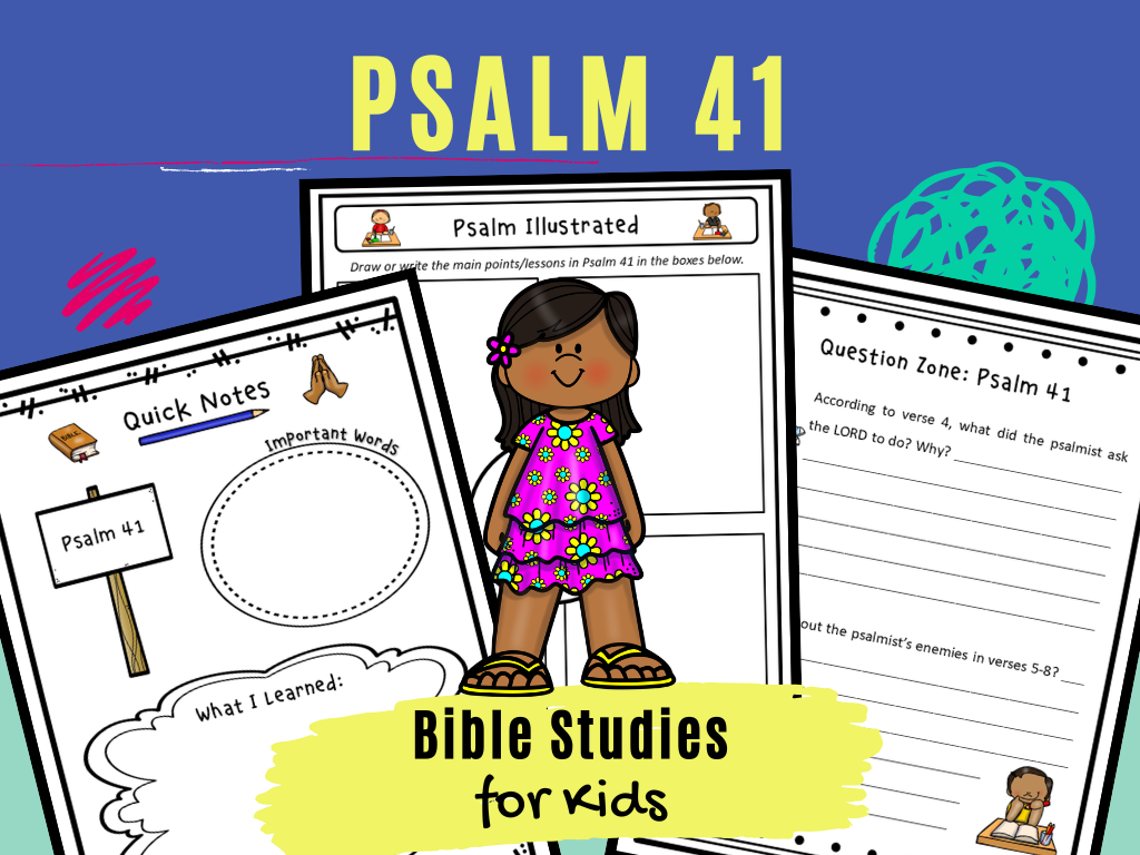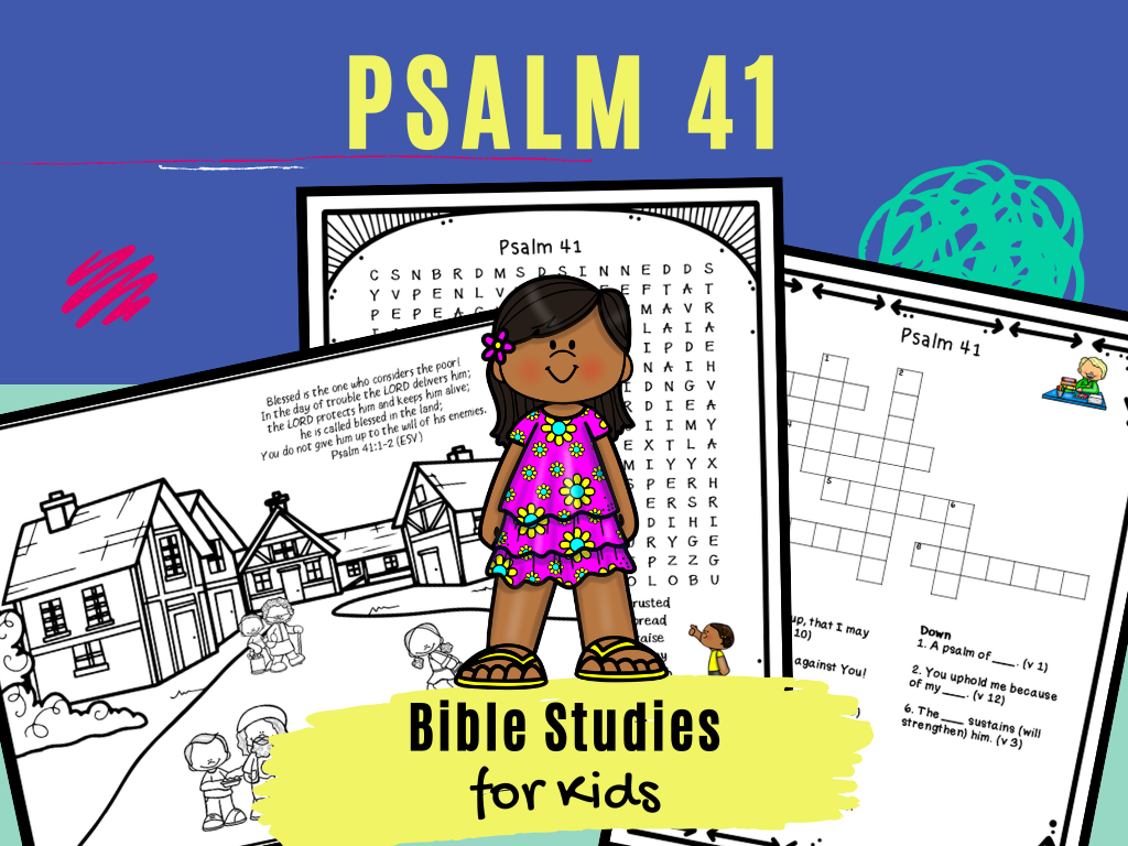 These fun activity pages will help children learn Psalm 41, a psalm of David that focuses on the blessing and suffering of those who trust in and follow the LORD. They can be used as time-filler activities, Sunday School lessons, or for a family worship service based on Psalm 41. They can also be used for personal Bible study at home.