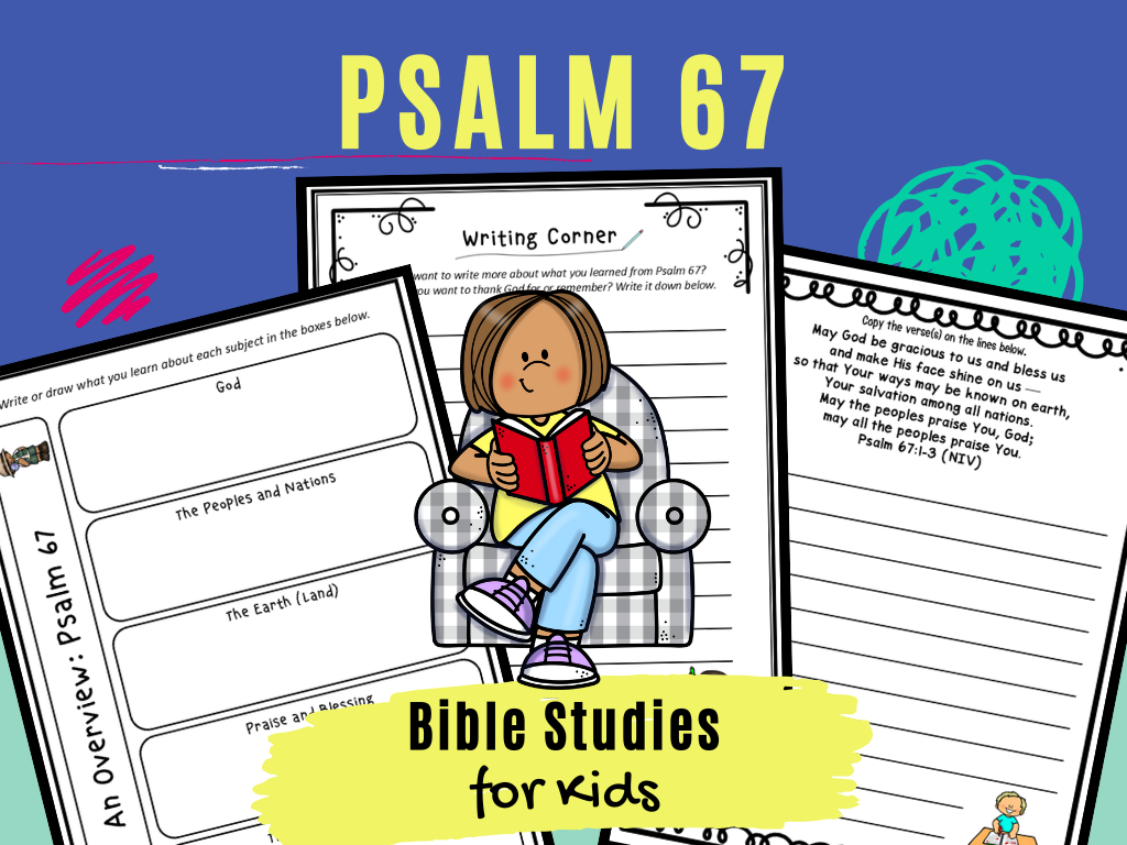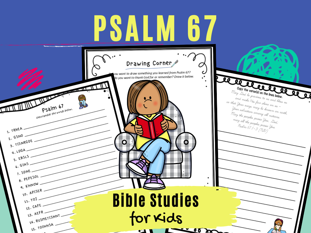 These fun activity pages will help children learn Psalm 67, which asks for God’s blessing and calls the nations to praise Him. They can be used as time-filler activities, Sunday School lessons, or for a family worship service based on Psalm 67. They can also be used for personal Bible study at home.