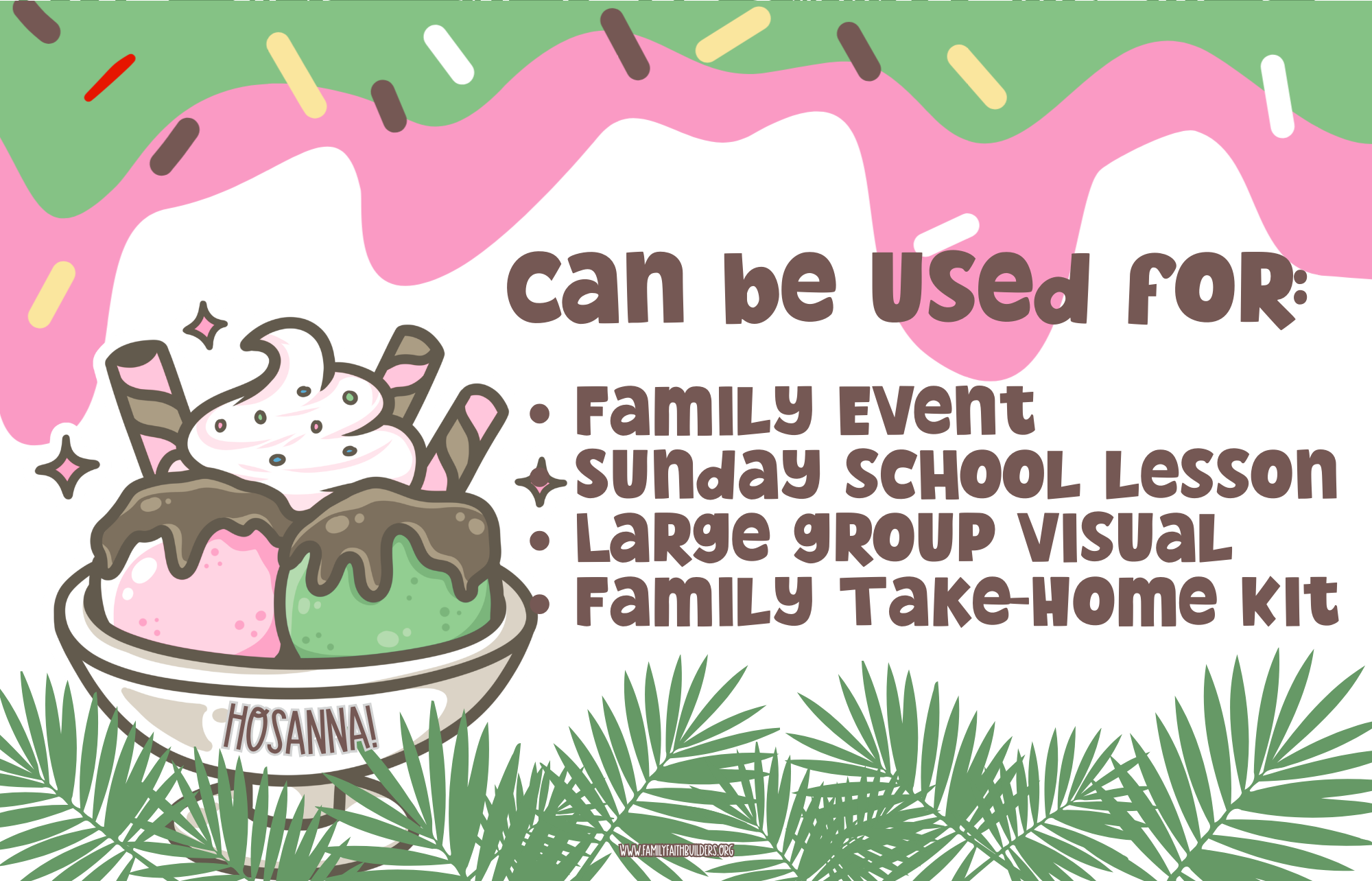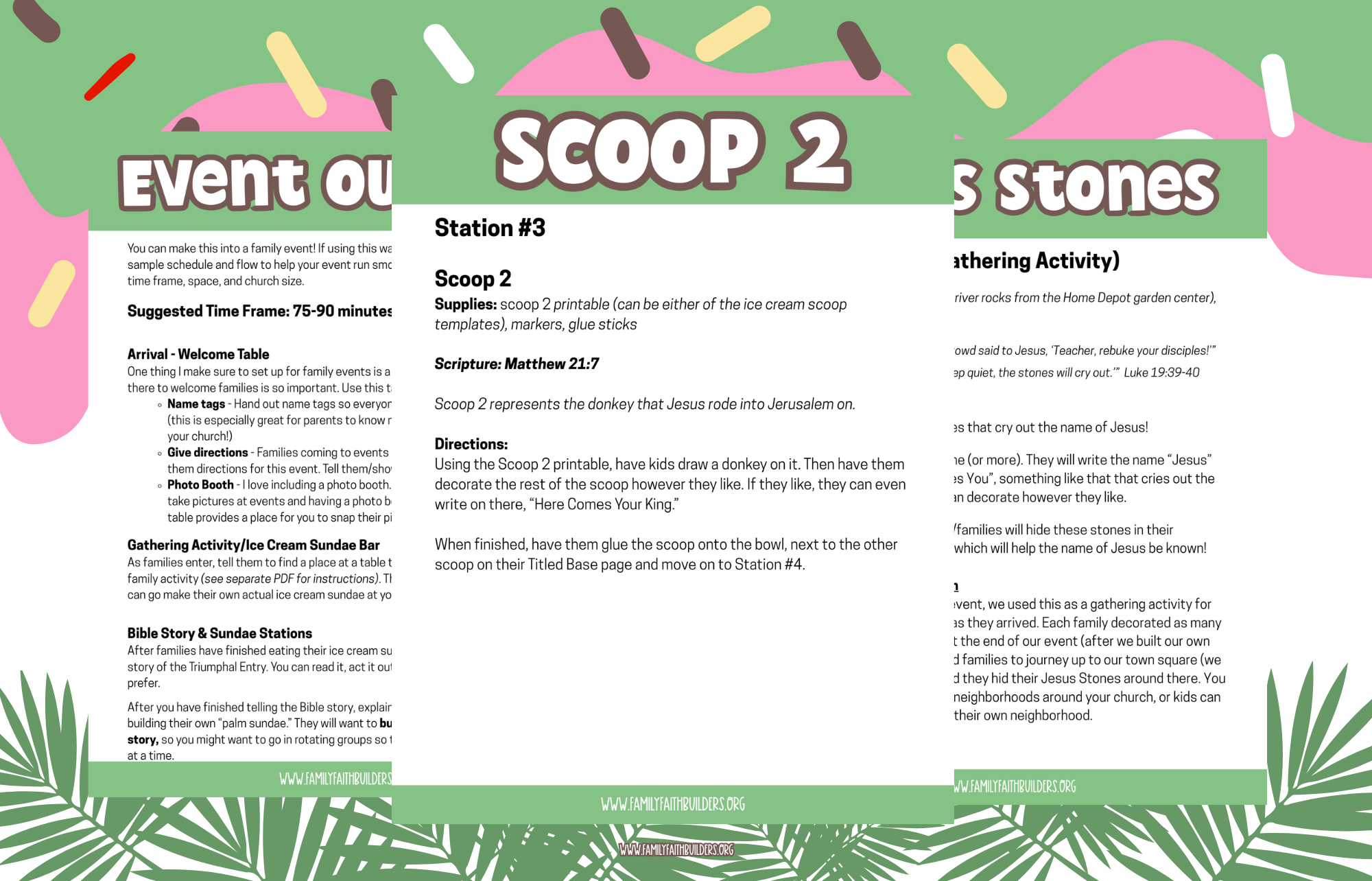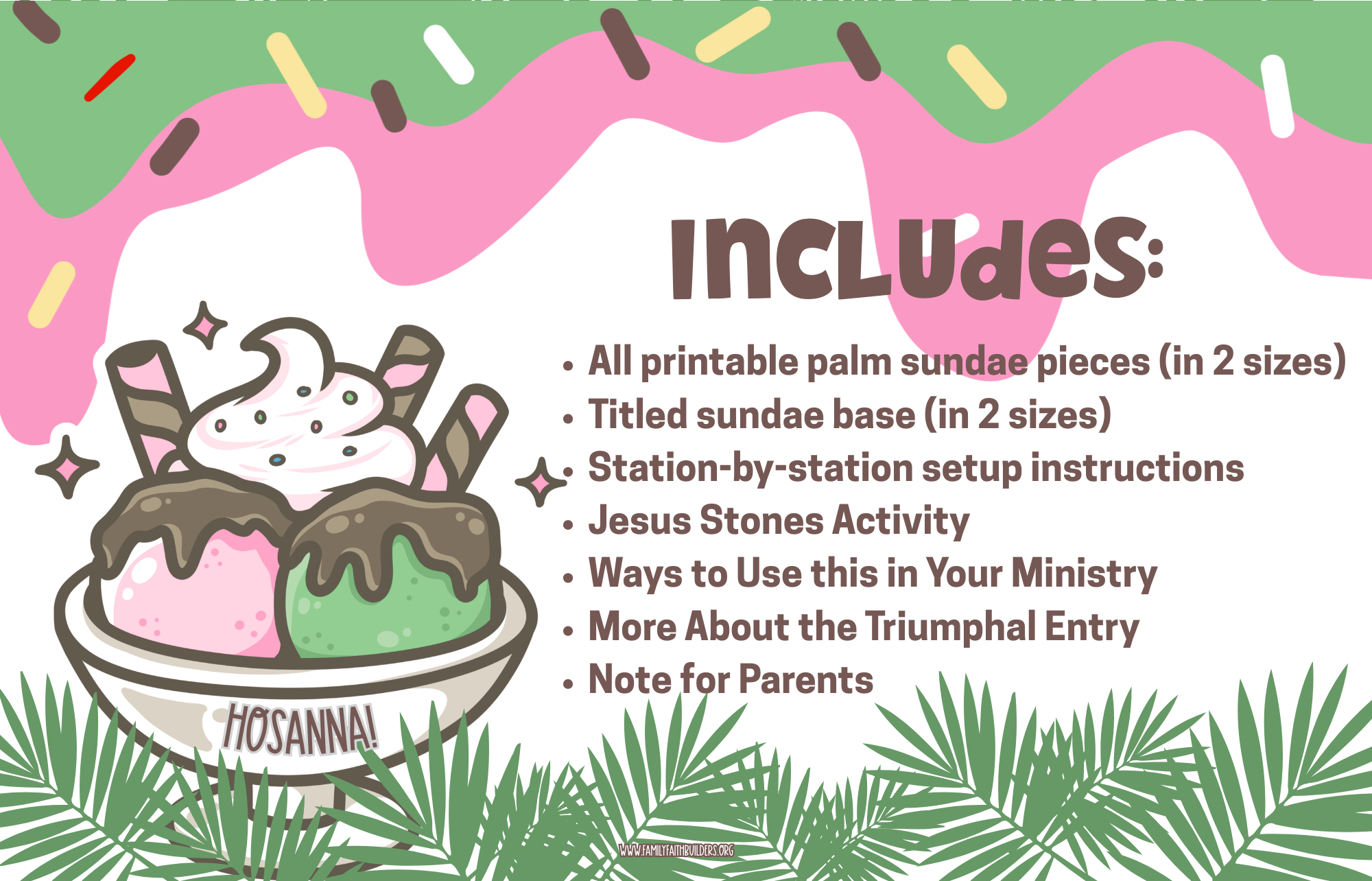 Build-a-Palm Sundae is a hands-on, station-based experience that walks kids step-by-step through the Triumphal Entry (Matthew 21:1–11) as they build a layered “Palm Sundae” made out of cardstock.