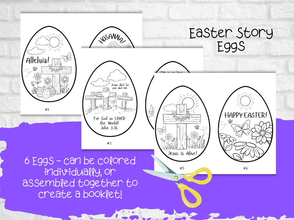 - The Easter Story Egg craft includes six EGGS which can be colored separately or assembled together to create a booklet.