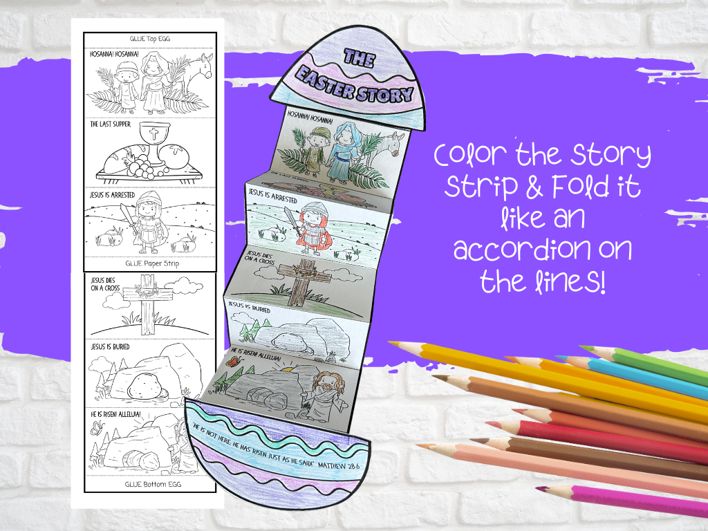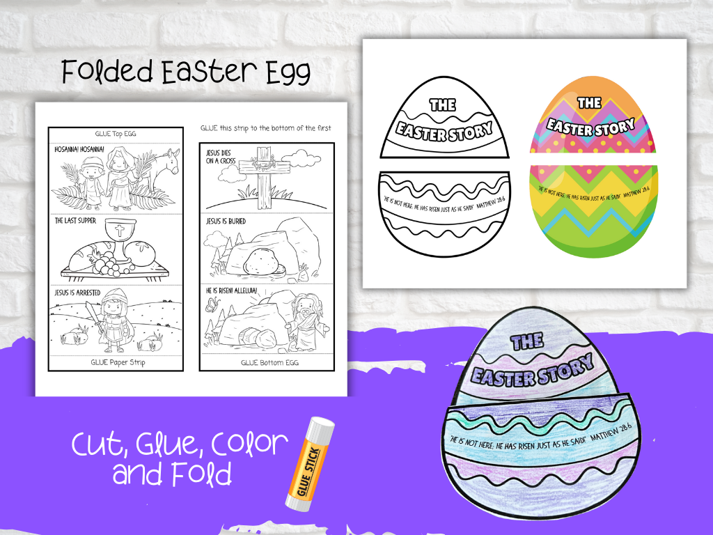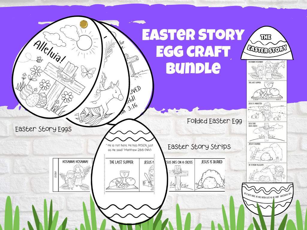 This Easter craft bundle includes 3 unique egg crafts: Easter Story Eggs, Easter Story Strip, and Folded Easter Story.