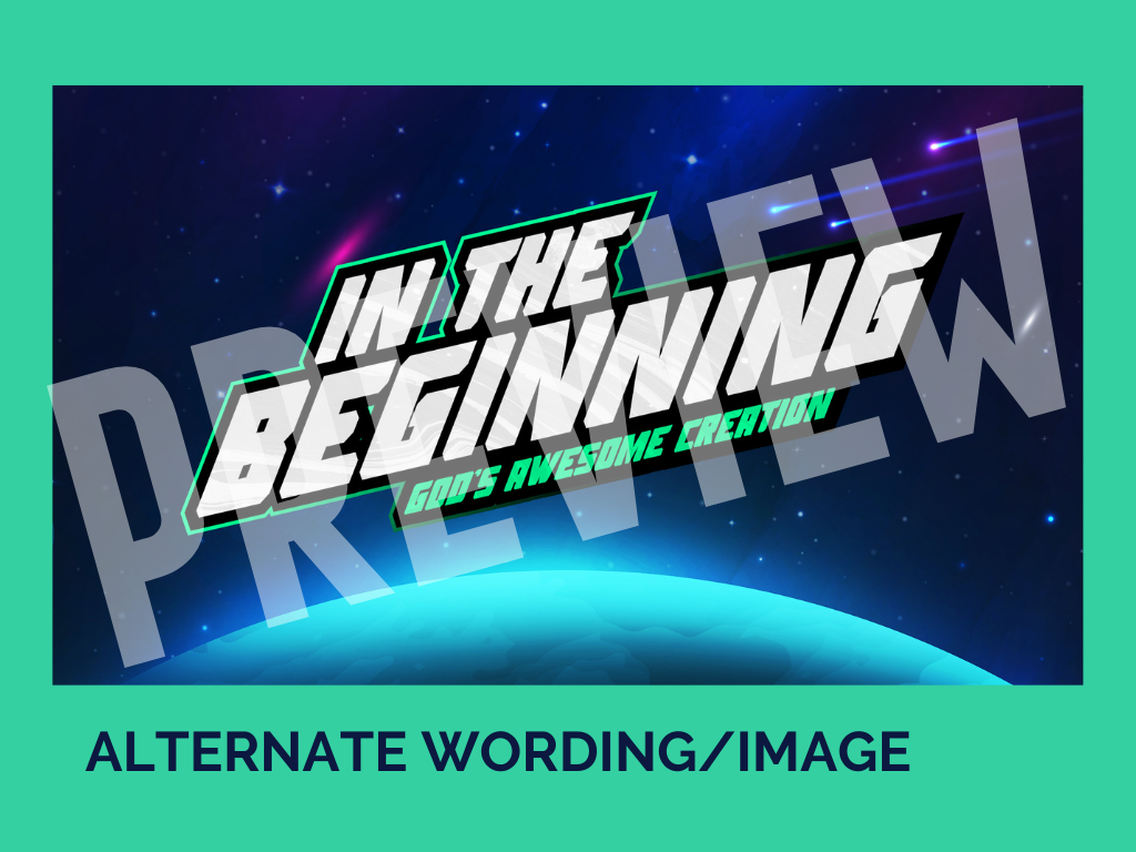 Inspire awe and wonder in your kids ministry with our “In The Beginning: God’s Awesome Creation” theme pack. This vibrant collection includes stunning visuals, engaging activities, and multimedia resources that bring the story of creation to life, helping children understand and appreciate the magnificence of God’s handiwork.