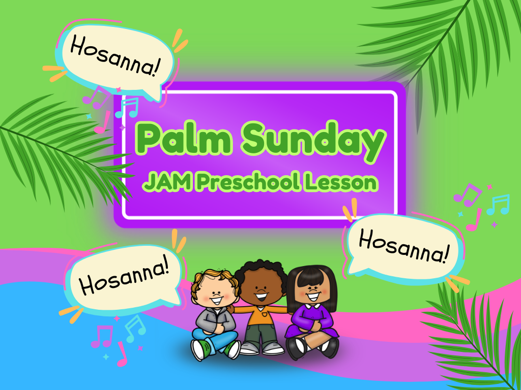 Palm Sunday JAM Preschool lesson uses the Bible, a craft, and music to invite preschoolers to explore the events of Palm Sunday!