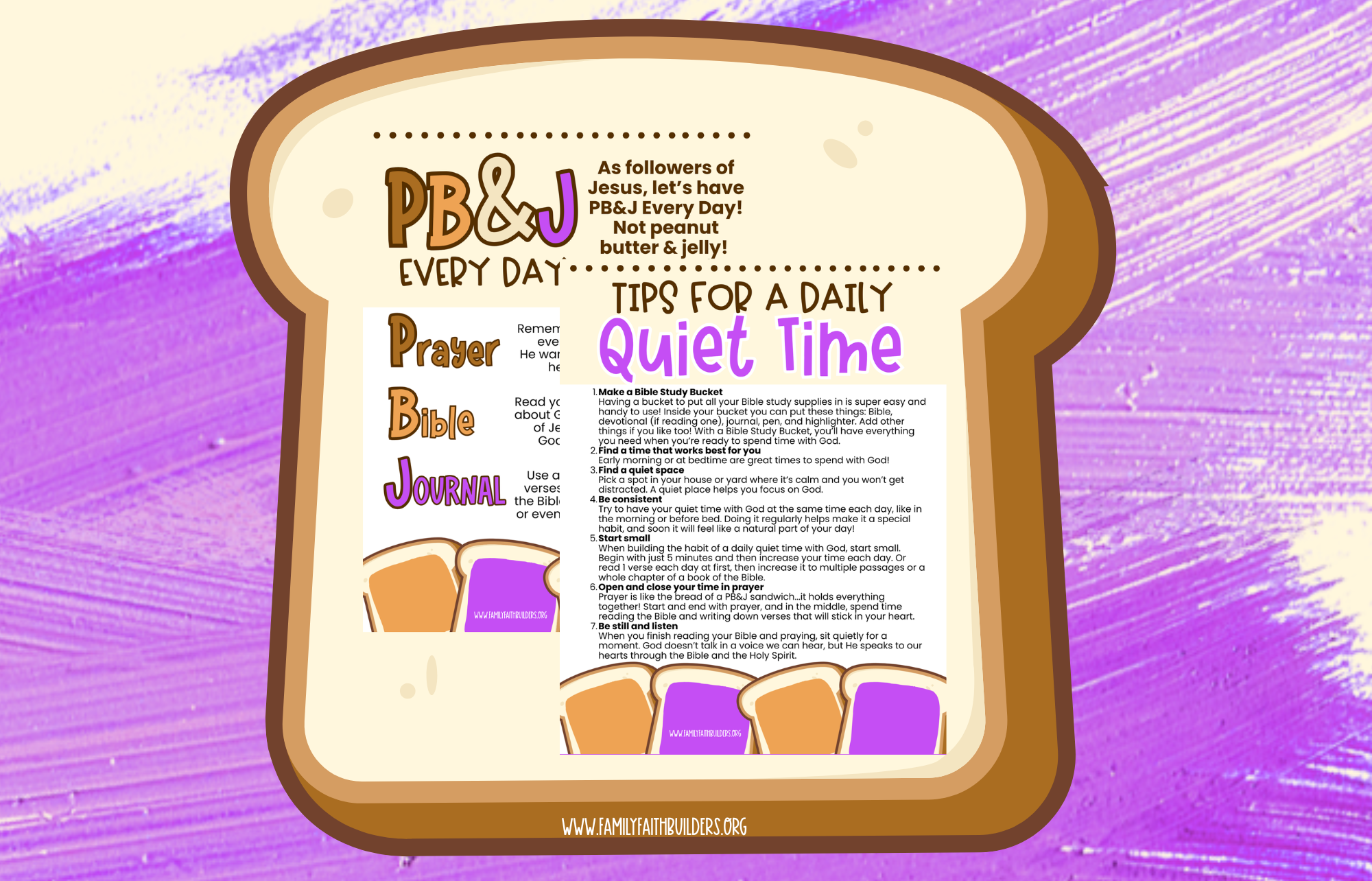 - A family devotion to give parents and kids an understanding of what PB&J means and how to use their journal